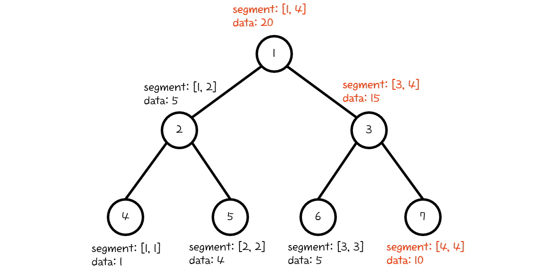 세그먼트 트리의 장점은 이진 트리를 기반으로 구성되기 때문에, 높이가 최대 $logN$이 됩니다.