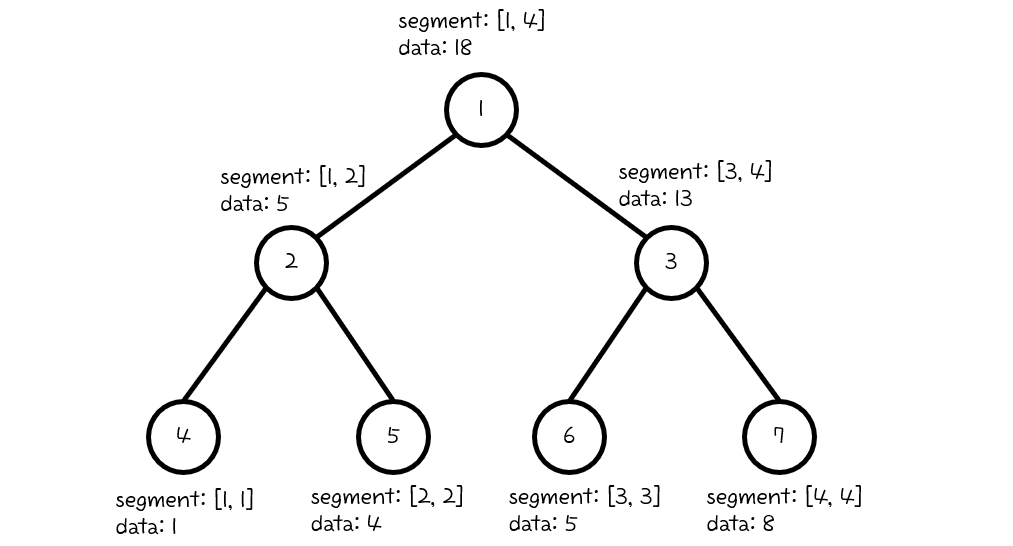 또한 어떤 구간에 대한 정보를 얻는 경우에도, 구간을 계속 반으로 나누어 구하므로 $logN$개만의 데이터로 구성할 수 있습니다.