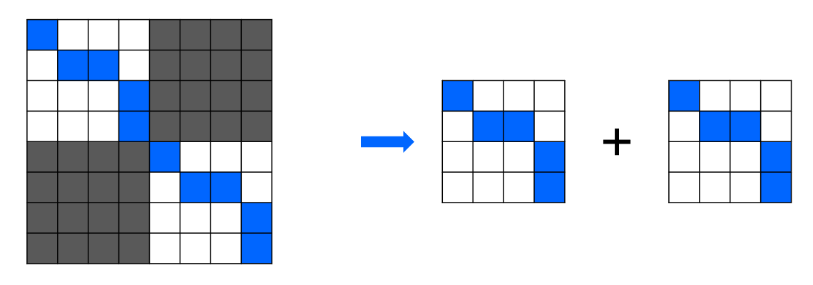 이때, 다음과 같이 쪼개진 두 문제는 처음에 구하려던 문제의 종류와 완전히 동일합니다.