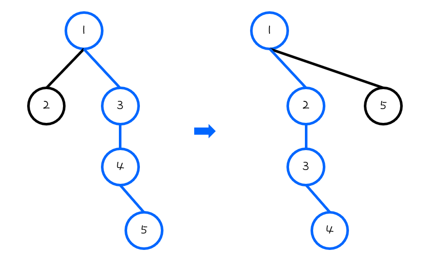 - 어떤 부모에 대해, 자식들 중 서브트리의 크기가 가장 큰 자식을 연결하는 간선