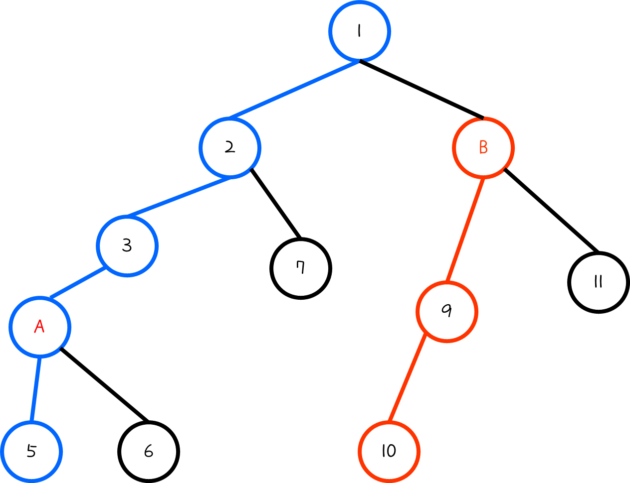 if(depth[top[a]] < depth[top[b]]) swap(a, b); //a가 더 깊음