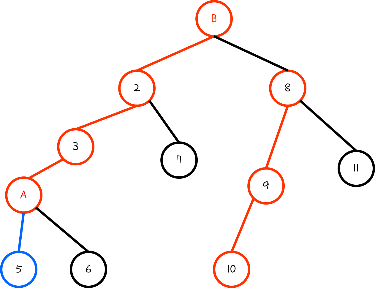 트리의 성질에 의해, 트리 위의 임의의 서로 다른 두 정점에 대하여 이를 연결하는 경로는 유일합니다.