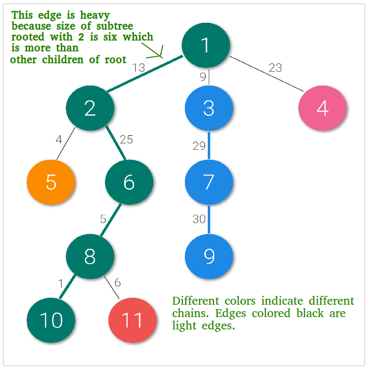 (이때 이 연결된 노드들을 Heavy chain이라 합니다.)