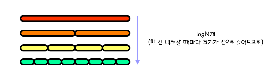 대충 가운데를 잡고 반으로 쪼개면, 두 구간 모두 크기가 반이 되면서 두 개의 구간으로 나누어지므로