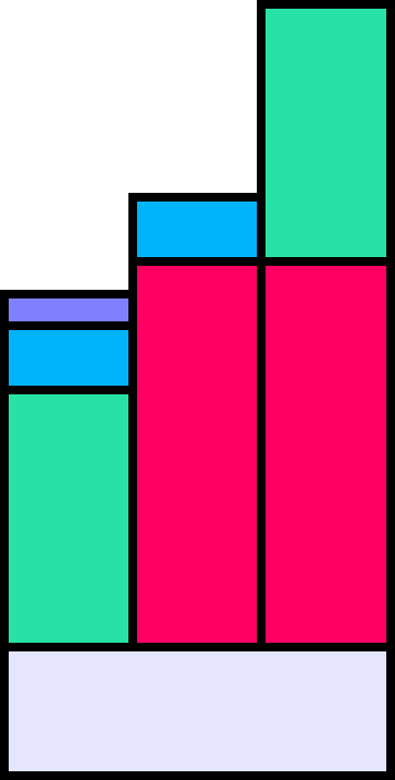 일단 모두 두 명이 점수를 얻도록 구성하였습니다. 높이는 점수와 비례하며, 같은 색깔 블록의 높이는 동일해야 합니다.